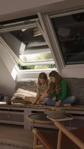 VELUX ACTIVE sa NETATMO automatski aktivira vaše prozore i roletne na osnovu merenja senzora unutrašnje klime i vremenskih podataka. Jednostavno kontrolišite prozore i pratite klimu u zatvorenom prostoru sa bilo kog mesta na svom pametnom telefonu. Živite udobno i mirno i stvorite zdraviju unutrašnju sredinu uz VELUX ACTIVE.